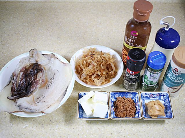 마른 오징어는 물에 충분히 불려서 사용하시면 돼요.