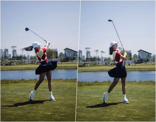 사진 속 강소연은 다양한 골프웨어를 입고 행사를 즐기는 모습이다. 특히 그가 직접 골프를 치는 듯한 모습도 담겼는데, 강소연은 탄탄한 꿀벅지를 뽐내며 안정적인 자세로 프로 못지 않은 비주얼을 완성했다.