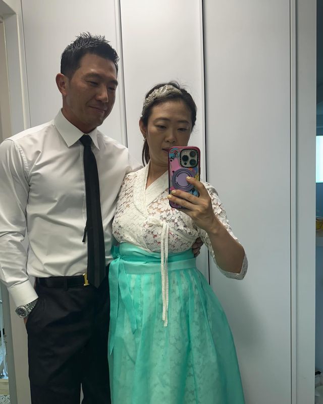 함께 올린 사진에는 정장을 입은 10기 상철과 흰색 시스루 한복에 속이 비치는 옥색 치마를 두른 22기 정숙의 다정한 모습이 담겨 있다. 22기 정숙의 과감한 패션이 눈길을 끈다.