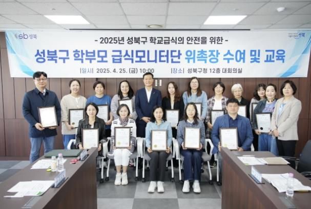 [파이낸셜경제=김영란 기자] 서울 성북구가 지난 25일 ‘2025년 성북구 학부모 급식모니터단 위촉장 수여 및 교육’을 개최하고, 학부모 20명을 급식모니터단으로 위촉했다.