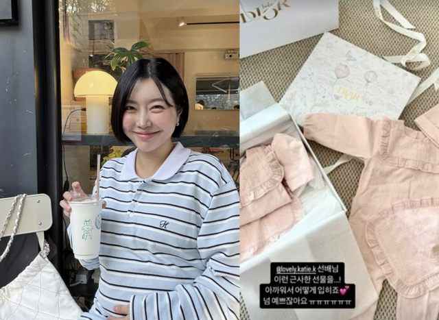 사진 속에는 레이스가 돋보이는 분홍색 명품 아기 옷 두 벌이 놓여있다. 쌍둥이 딸 출산을 앞둔 레이디 제인을 위해 고른 김희선의 센스가 느껴진다.