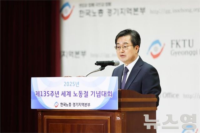 김동연 지사가 지난 30일 노동절 기념대회에서 기념사를 하고 있다./사진=경기도