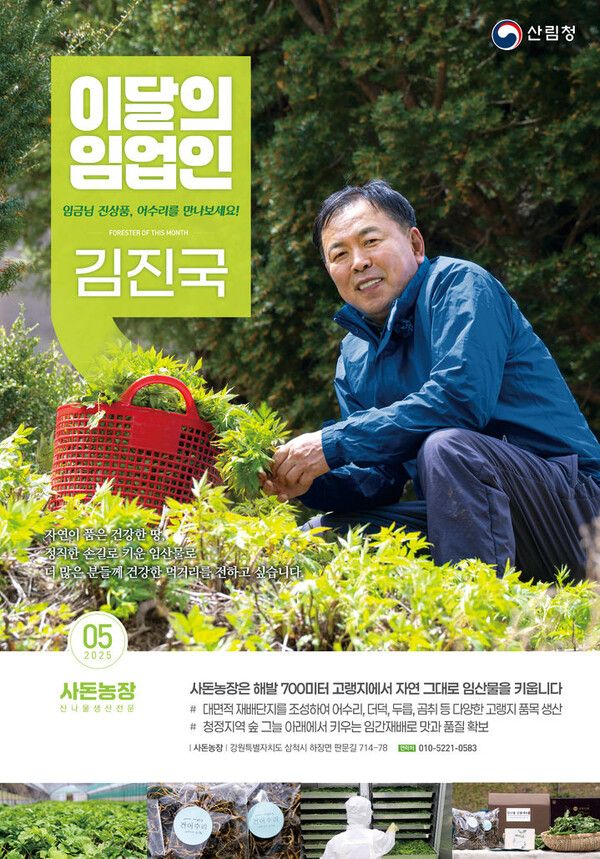 산림청은 5월 '이달의 임업인'으로 강원 삼척에서 어수리를 재배하는 김진국(64) 사돈농장 대표를 선정했다고 1일 밝혔다.