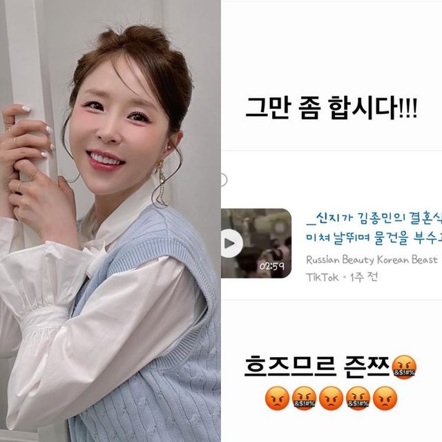 신지가 공개한 사진에는 ‘신지가 김종민의 결혼식에서 미쳐 날뛰며 물건을 부수고’라는 자극적인 제목의 영상이 담겨있었다. 신지는 사실과 무관한 ‘가짜 영상’에 분노한 것으로 보인다.