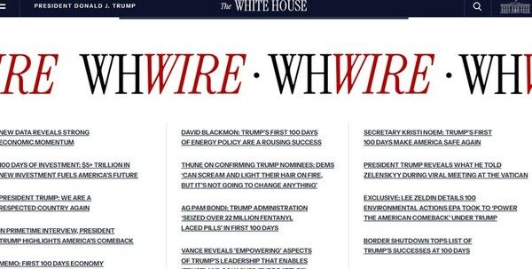뉴시스 보도에 따르면, 30일(현지 시간) 미국 언론 액시오스 등에 따르면 이날 백악관은 '백악관 와이어'라는 이름의 웹사이트를 개설했다.