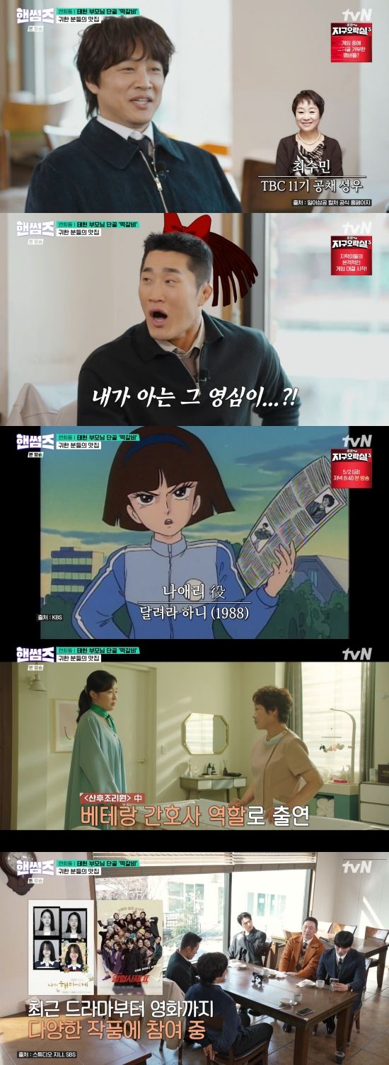김동현은 "우리가 아는 어떤 목소리냐"라며 관심을 나타냈고, 차태현은 "'영심이' 뭐 이런 거"라며 출연 작품을 언급했다. 김동현은 "'영심이' 목소리이시냐"라며 깜짝 놀랐고, 차태현은 "'달려라 하니'의 해설이랑 나애리"라며 덧붙였다.