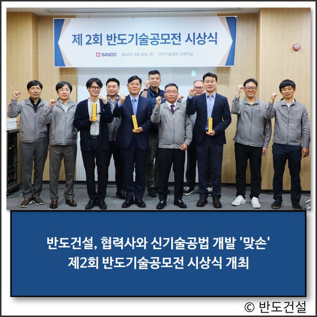 반도건설이 지난해 12월 개최한 제2회 반도기술공모전 수상 기업과 함께 시상식을 진행했다.
