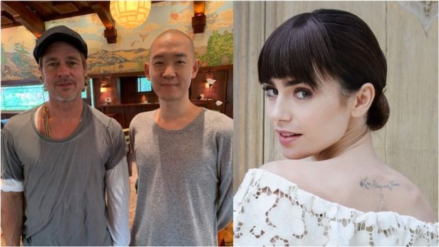 "브래드 피트에겐 4-5개를 그려줬는데, 본인이 밝히지 않은 타투에 대해선 얘기할 순 없을 거 같고, 팔에 벌 한 마리를 그렸어요. 릴리 콜린스는 꽃에서 피어나는 자기 자신을 표현한 연꽃에 앉아 있는 소녀를 그려줬습니다."