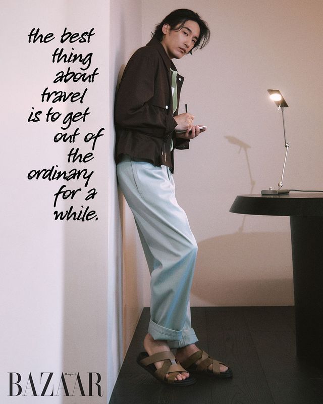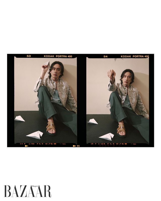 재킷, 피케셔츠, 팬츠, 샌들은 모두 Hermès.