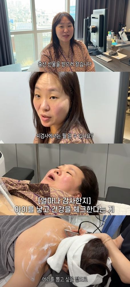 검사를 하고 정주리는 "대단한 출산 선물이에요 진짜. 아이를 낳고 건강을 체크한다는게 (얼마나 감사한 건지)"라며 감사 인사를 전했다.