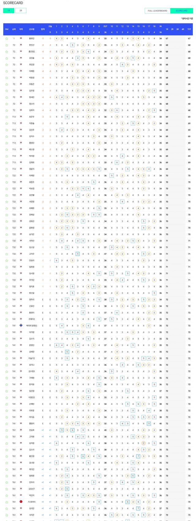 1.황유민 -5, T2.한진선-홍진영2-김민솔-최민경-이예원-박현경-이동은-김우정-현세린-김소이-김희지 -4, T13.최은우-지한솔-김민주-김지수-홍정민-배소현-박지영-김재희-정윤지 -3, T22.이제영-유현조-박보겸-김민별-서연정-최혜원-전예성-성유진-송가은 -2, T32.서어진-김소담-고지우-안송이-임희정-김시현-정지효-방신실 -1, T41.황정미-짜라위분짠-이가영-김수지-문정민-임진영-이정민2-손예빈-마다솜-홍현지 E, T61.전승희-고지원-김지현-김나영-정희원-전우리-김민선7-박민지-김리안-최예림-노승희-이세희-조아연-박혜준-홍지원 +1, T86.권서연-최가빈-허다빈-오경은-송은아-박주영-정지유 +2, T98.장하나-윤혜림-강가율-황연서-조정민-안선주 +3, T109.유효주-장수연 +4, T119.윤선정-박소혜 +5, T124.빠따랏랏따놘 +6, T127.이율린-리슈잉+7, 130.이소영 +10.