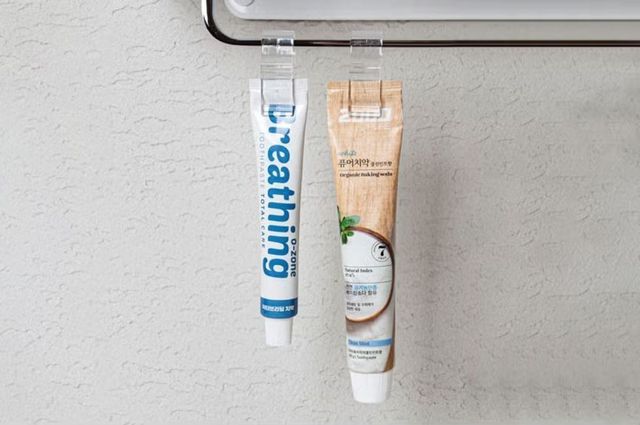 치약, 클렌징폼, 핸드크림처럼 튜브형 제품을 깔끔하게 걸어둘 수 있는 후크다. 물때 걱정 없이 자주 쓰는 제품을 한눈에 찾을 수 있다. 투명 플라스틱 소재라 욕실 인테리어에도 거슬리지 않는다. 고정력도 뛰어나고, 다 쓴 튜브는 옆으로 밀어 간편하게 분리할 수 있다.
