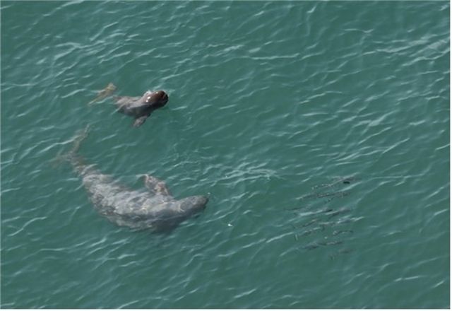 국제 멸종위기종이 만삭의 몸으로 유유히 바다를 유영하고 갓 태어난 새끼를 정성스레 돌보는 모습이 포착돼 감동을 안기고 있다.