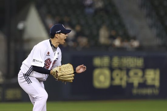 고효준은 8회 초 이닝이 끝난 뒤 더그아웃으로 내려오면서 강렬한 포효를 선보였다. 고효준은 베어스 역대 최고령 등판, 최고령 홀드, 최고령 탈삼진 기록을 모두 갈아치웠다.