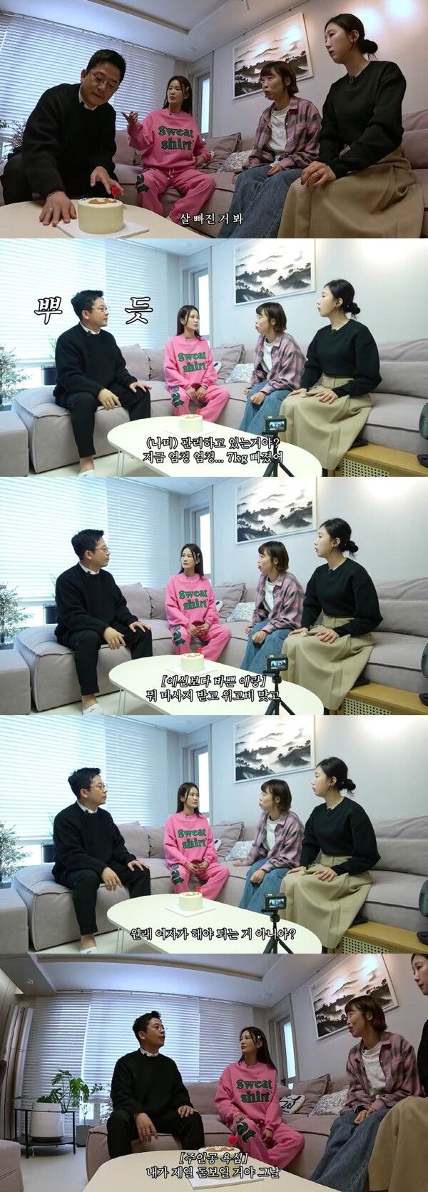 이날 김지민은 김준호를 가리키며 "살 빠진 것 봐. 7kg 빠졌다"라고 자랑했고, 박소영 역시 "선배님 진짜 많이 빠졌다"라며 놀라움을 감추지 못했다.