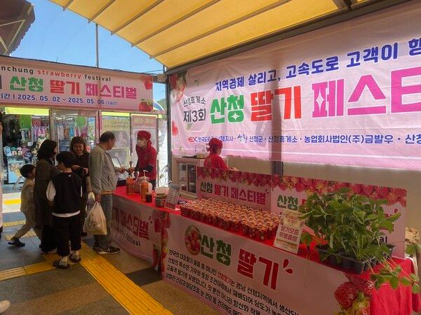 경남 산청군 (주)대교 산청휴게소는 2일 가정의 달을 맞아 대전-통영 간 고속도로 산청휴게소에서 지리산 청정 명품 산청딸기제품을 판매해 ‘산청 딸기’의 우수성을 홍보하는 제3회 산청딸기 페스티벌 개최한다.