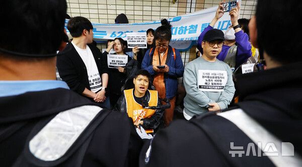 지난달 21일 전장연은 지난해 4월 8일 뒤로 1년 만에 지하철 탑승 시위를 다시 시작했다. 2021년 12월 3일부터 시작한 '지하철 탑니다'는 이날로 모두 63회를 기록했다.