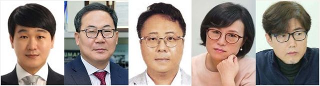 한국인터넷신문협회 신임 이사. 김형근 경인매일 대표, 노석철 쿠키뉴스·쿠키메디컬 대표, 윤미경 뉴스;트리 대표, 이종엽 프라임경제 대표, 이충건 디트뉴스24 대표.(왼쪽부터)