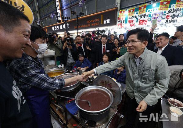 뉴시스 보도에 따르면, 김문수 국민의힘 대통령선거 경선 후보는 2일 한덕수 전 국무총리가 대선 출마를 선언한 것과 관련해 "단시간 내에 볼 것"이라고 밝혔다.