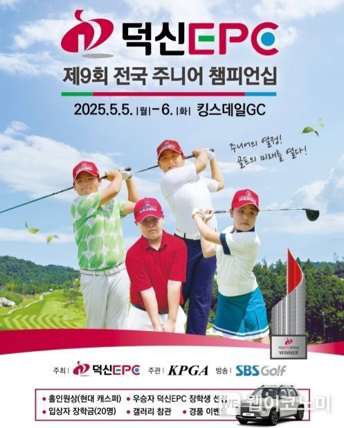 (웹이코노미) 덕신EPC(회장 김명환)가 주최하고 (사)한국프로골프협회(회장 김원섭, KPGA)가 주관하는 ‘제9회 덕신 EPC배 전국 주니어 챔피언십’이 5일부터 6일까지 양일간 충북 충주 소재 킹스데일 골프클럽 레이크, 힐코스에서 펼쳐진다.