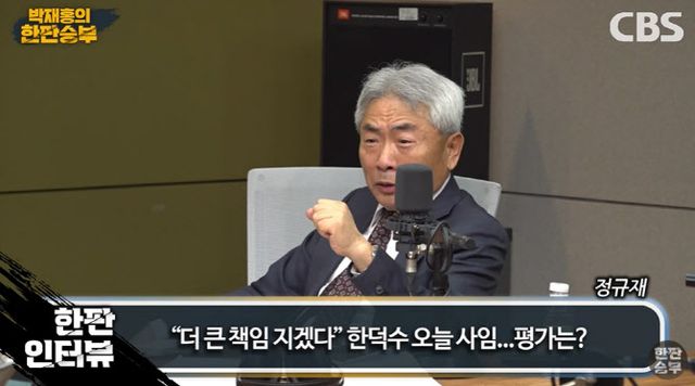 정 전 주필은 2일 SBS 라디오 ‘김태현의 정치쇼’와의 인터뷰에서는 “한 전 권한대행이 정치를 하고 싶으면 좀 일찍 그만두는 게 맞았다. 관료는 항상 정치 중립적이고 정치로부터 거리를 유지하는 게 20세기의 기본 전통”이라며 “그런 관료가 옷 벗자마자 지금 대선에 바로 뛰어들어야 하는데 부적절하다고 본다. 원칙적으로 보면 이건 잘못된 것”이라고 밝혔다.