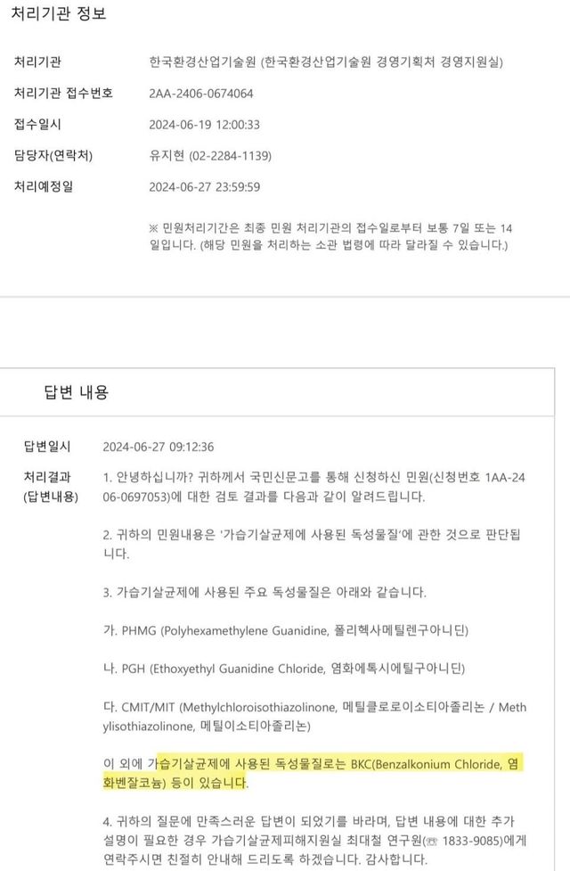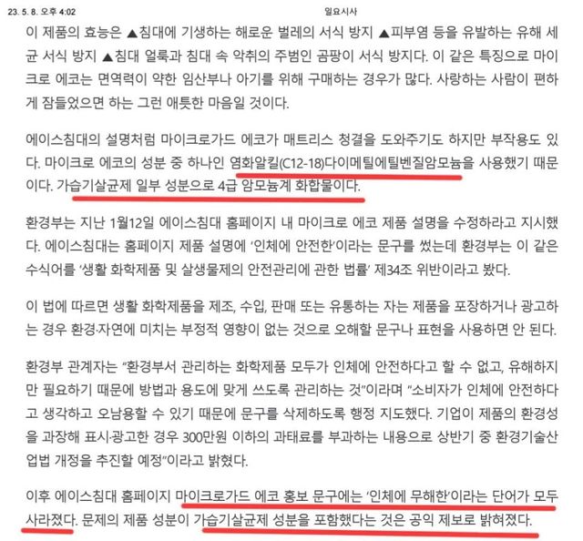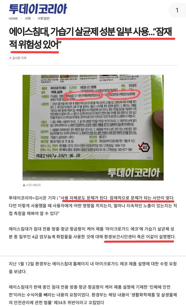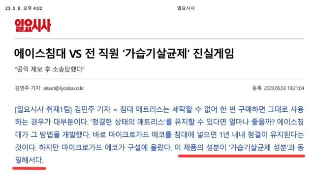 저는 (주)에이스침대에 가습기살균제 원인성분이