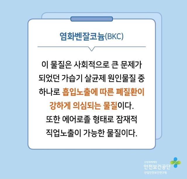 알킬벤질디메틸암모늄염화물(염화벤잘코늄,BKC)을 정확히