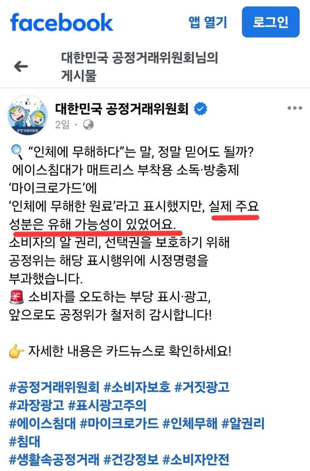 거짓광고를 하여 환경부와 공정위에서 행정처분을