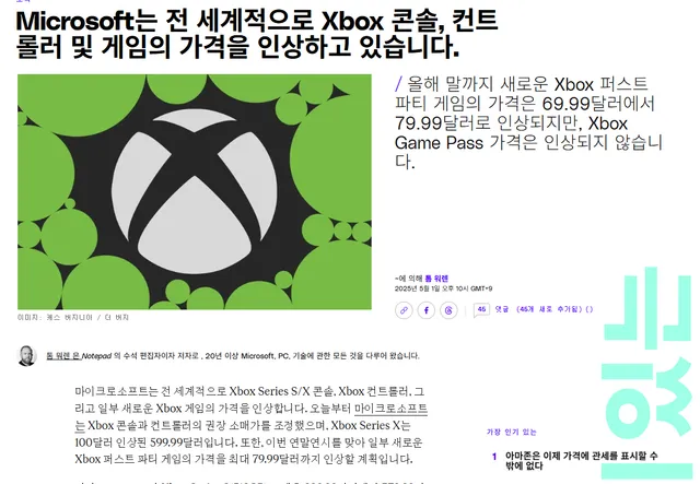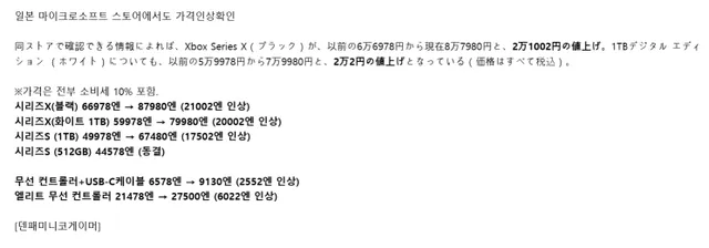 오늘부터 전 세계 XSX|S 본체 및 주변기기 가격 인상