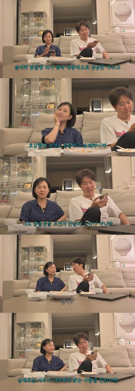 또 도경완은 "사람들이 날 만나면 자꾸 결혼 잘했다고 이야기하는데 네가 봤을 때는 내가 결혼을 잘한 거야 장윤정이 결혼을 잘한 거야?"라고도 질문했다.