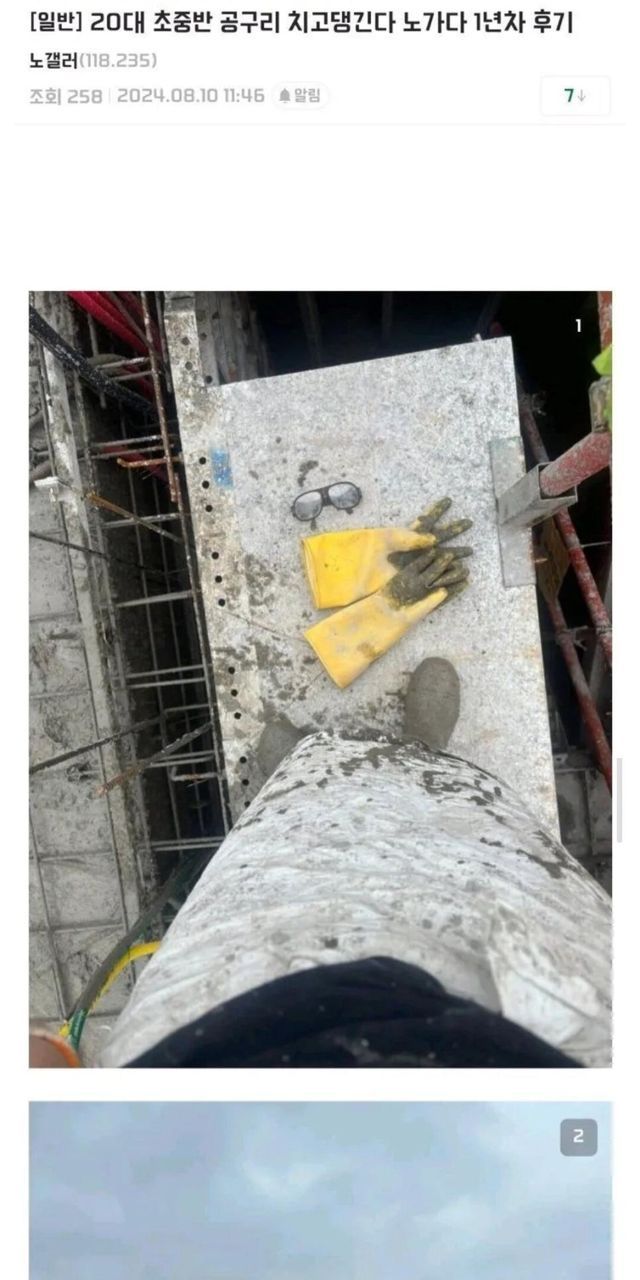 20대 초중반 공구리 치고댕긴다 노가다 1년차 후기