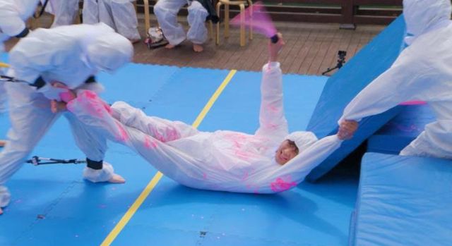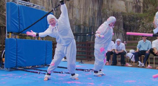 그런가 하면, 지예은은 언니·오빠 할 거 없이 스펀지봉을 휘두르며 하극상을 선보였다. 팔다리가 끈에 묶인 채, 상대팀에게 물감을 묻혀야 하는 미션에서 자신에게 달려드는 지석진을 향해 “요놈아~”를 연발하며 한껏 농락했기 때문. 하지만 이내 공수가 교체되자 보이지 않는 누군가에게 조종당하는 것처럼 지예은은 ‘목각 인형’이 돼 몸 개그의 향연을 펼쳤다.