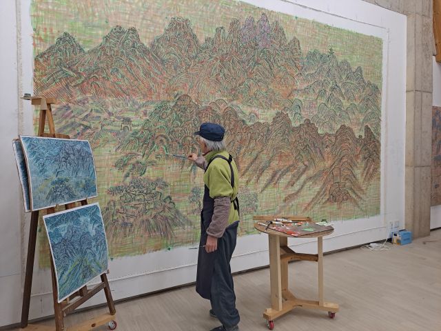그의 대표작 <북한산> 앞에 섰다. 2018년 남북정상회담 당시, 문재인 대통령과 김정은 북한 국무위원장이 악수를 나누는 남북화해의 상징이 된 작품이다. 판문점 남측지역인 자유의 집에 <북한산>을 설치한 것은 사상 처음 남쪽 땅을 밟는 북측 최고지도자를 서울의 명산인 북한산으로 초대한다는 의미였다고 한다. 세계인이 주목한 것은 회담보다 이 그림이었을지도 모른다.