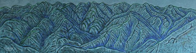 민 선생님은 북한산을 골골이 답사한 뒤 수많은 영봉 사이로 삼천사 다층석탑과 마애불, 사모바위까지 골골이 새겨 놓았다. 북한산의 굽이치는 연봉과 능선이 파란색 용들로 뒤엉켜 꿈틀대듯 웅장하다. 구상에서 완성까지 1년 이상이 걸렸다고 한다. 화단에서는 이 그림이 비록 서양화지만 겸재 정선의 진경산수의 전통을 이은 대표작으로 평가한다.