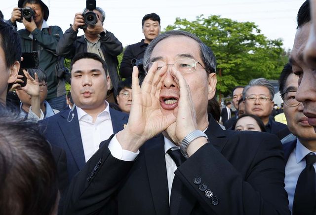 시민단체 관계자들은 "내란 동조 세력 한덕수는 물러가라", "5·18 참배 자격 없다"고 외쳤고, 경호 인력과 밀고 당기는 경미한 몸싸움을 벌였다. 결국 10여분간 민주묘지에 들어가지 못한 한 후보는 헌화·분향 대신 민주의 문 앞에서 고개를 숙이며 참배를 대신했다.
