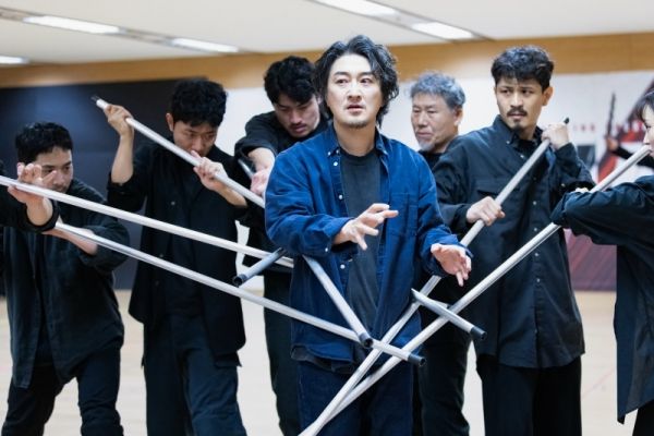 공연 시간도 100분이다. 그래서일까. 개막을 열흘 쯤 앞두고 4월 30일 서울 충무아트센터에서 35분간 이어진 ‘킬링 시저’ 연습 현장의 밀도는 매우 높았다. 연습실이기에 특별한 조명도, 장치도 없다. 시저 역 중 한 명인 손호준 배우는 셔츠에 청바지 차림이었지만, 기원전 로마의 정치판과 암투 현장으로 데려가는 듯 했다. 불안하고 음산한 분위기에는 차가운 금속성의 음악도 한몫했다. 채석진 감독, 그리고 앞서 2024 예술의전당 토월정통연극 ‘햄릿’에서 호평받았던 지미 세르의 작품이란다.