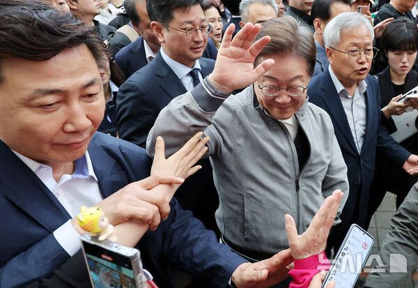 이날 오전 강원도 속초 중앙시장을 방문한 이 후보도 시민들과 만나 인사하며 이와 관련해 양해를 구했다. 그는 " "제가 오늘부터는 경호 문제 때문에 손을 잡는 일 등을 못 하게 됐는데 이해 부탁드린다"며 "오늘도 뭔 일이 있을 거라 그래서 저희가 좀 조심해야 한다. 이해해 달라"고 말했다.