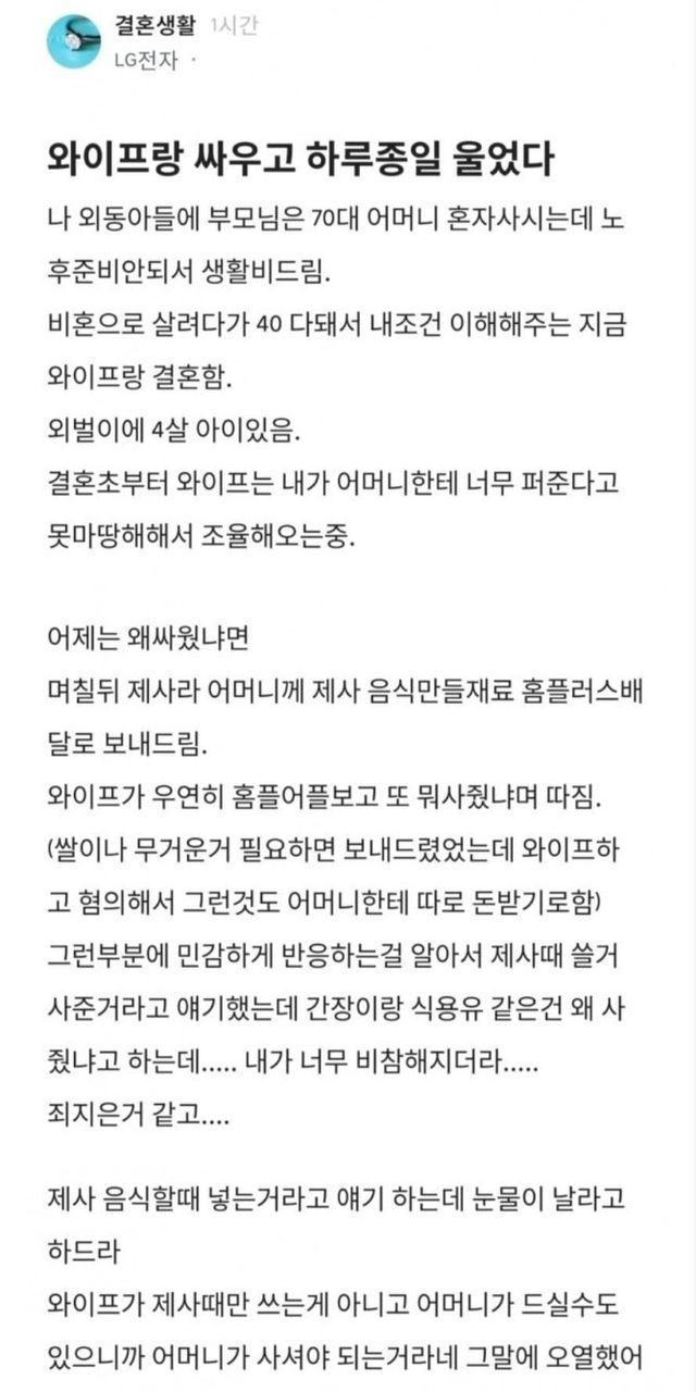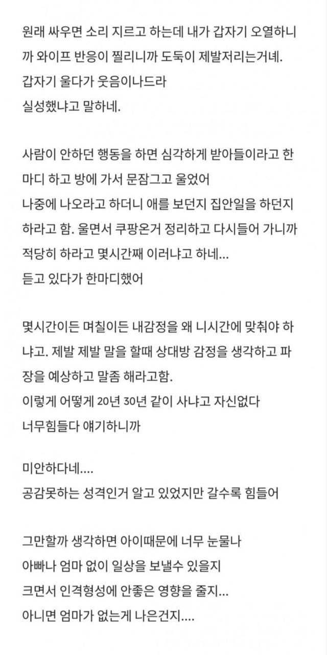 와이프랑 싸우고 오열한 블라남