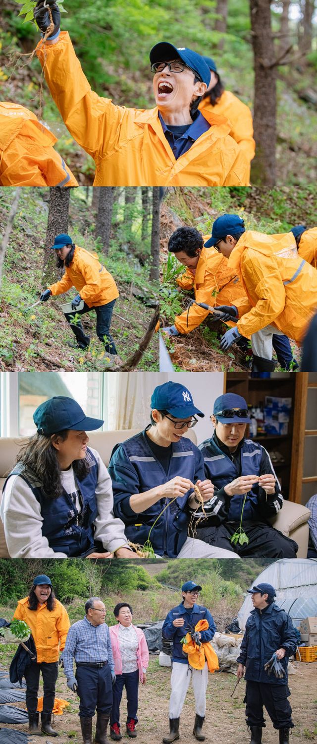 공개된 사진 속 유재석과 하하는 홍천으로 그들을 초대한 염희한 여사와 함께 산에서 산양삼을 캐고 있다. 우비를 입고 호미, 곡괭이를 챙겨 급 산행에 오른 세 사람의 모습이 뜻밖의 험난한 약속 지키기 여정을 예감케 한다.