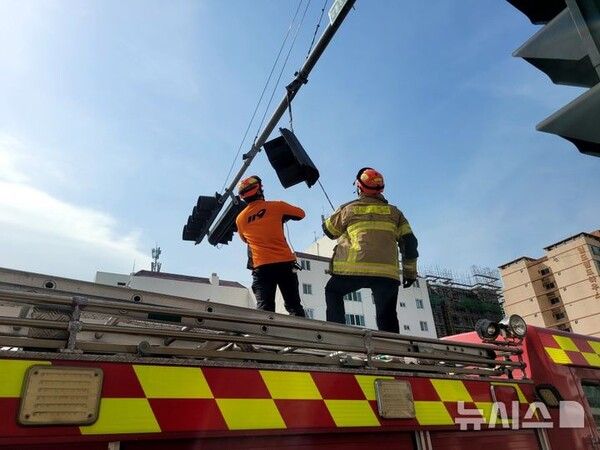 오전 9시30분께 제주시 일도2동에서는 신호등이 떨어지는가 하면 오전 9시40분꼐 애월읍에서는 신호등 와이어가 늘어져 인근 119센터에서 출동했다.