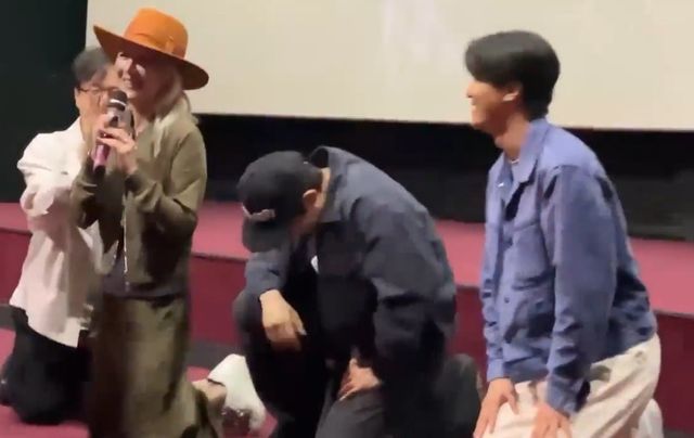 김성철은 "선생님 이제 일어나세요"라며 이혜영을 챙기며 "무릎까지 꿇고 부산에 왔다. 무대인사 할 수 있어 너무 좋은 시간이다"라는 진심을 전했다.
