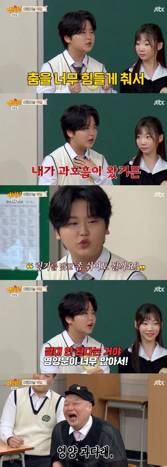 박성온은 "요새 관리하고 있다. 밥도 많이 안 먹었다"며 "내가 '미스터트롯2' 경연 때 춤을 너무 힘들게 춰 무대 후 과호흡이 왔다. 그때 의사에게 링거를 맞고 쉬어도 되냐고 이야기했었다"며 만 12세에 경연에 임했던 당시를 회상했다.