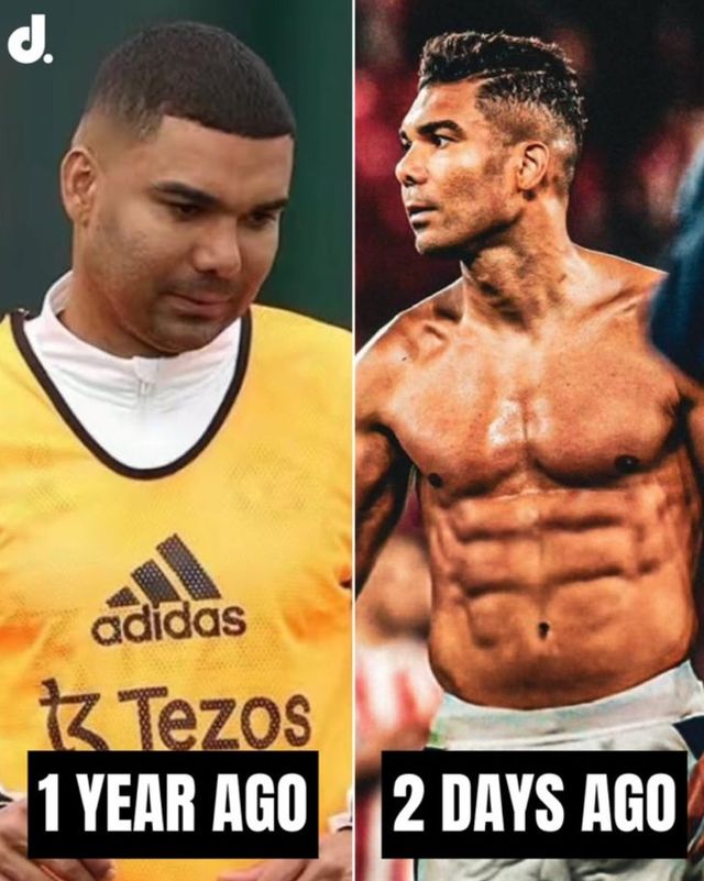 맨유 소식통 ‘센트리 데빌즈’는 카세미루의 1년 전 모습과 현재 사진을 비교했다. 1년 전 시즌 개막을 앞두고 카세미루는 다소 후덕한 모습이었다. 볼살이 빵빵했다. 그러나 지금은 턱선이 날렵해졌고 감량에 성공해 선명한 복근도 있었다. 매체는 “카세미루는 불평하지 않고 엄청나게 열심히 했다. 그리고는 선발 라인업에서 자신의 자리를 되찾았다”라고 말했다.