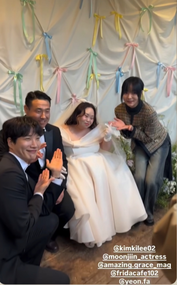 배우 문지인은 자신의 SNS를 통해 “마음이 예사롭지 않다. 내 눈물샘. 결혼 축하합니다”라는 글과 함께 순백의 웨딩드레스를 입고 아름다운 신부의 자태를 뽐내는 정은혜 씨와 신랑의 행복한 모습이 담긴 사진을 공개하며 축하를 전했다.