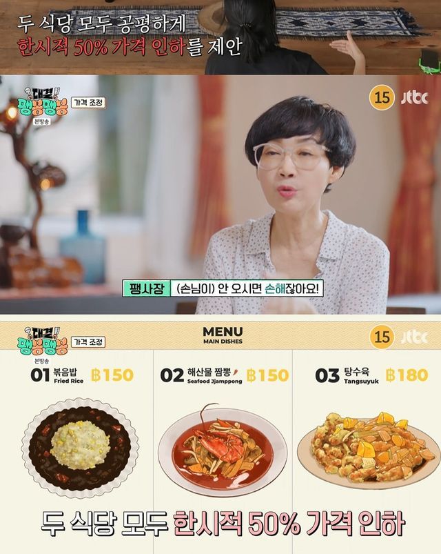 팽현숙도 "괜히 이 가격을 고수해 봤자 안 오시면 손해다"며 동의했고, 두 가게는 한시적인 가격 인하에 나섰다.