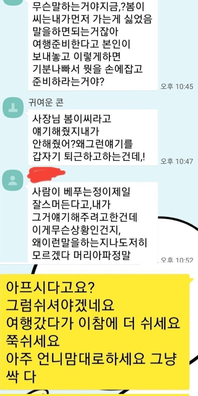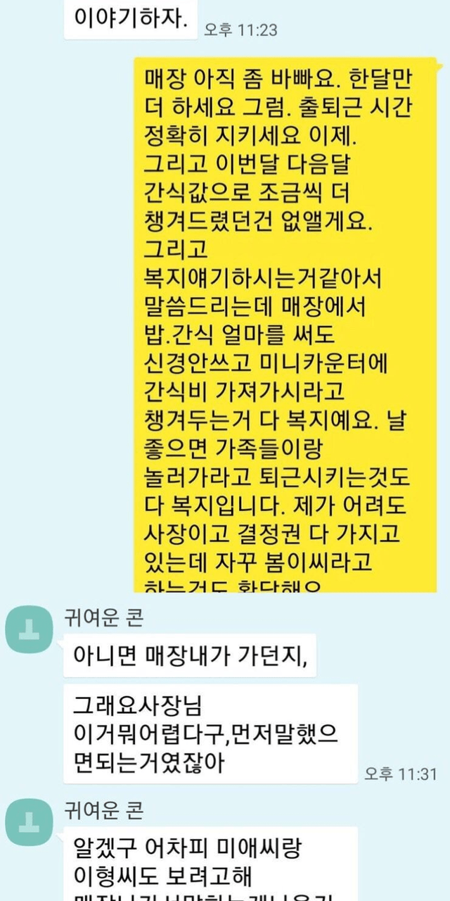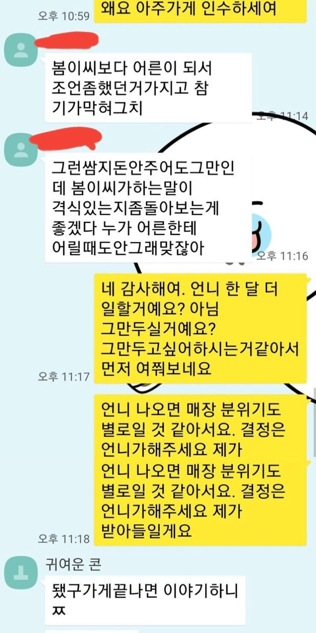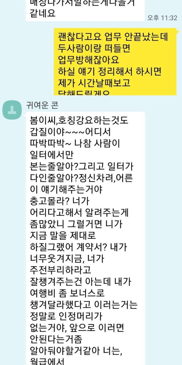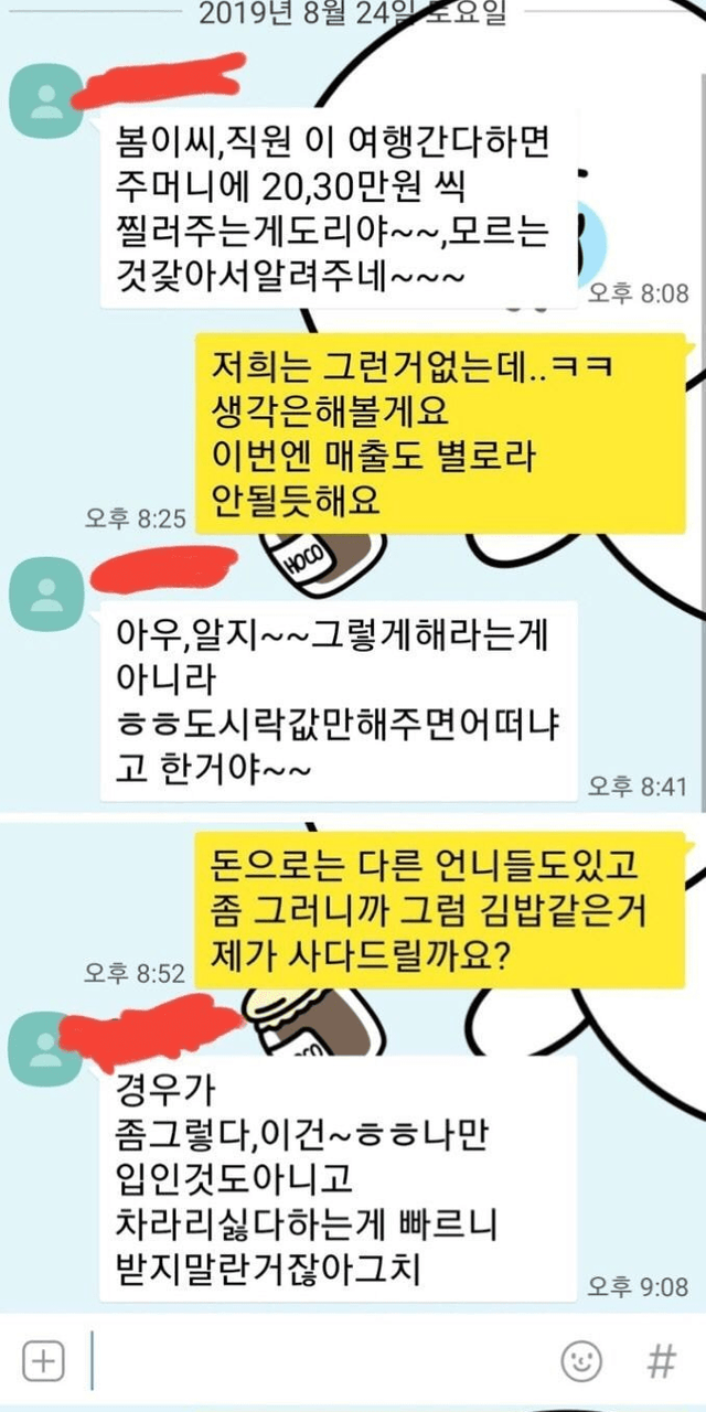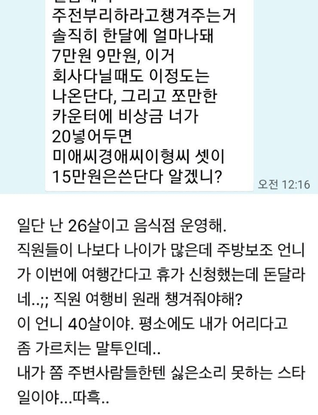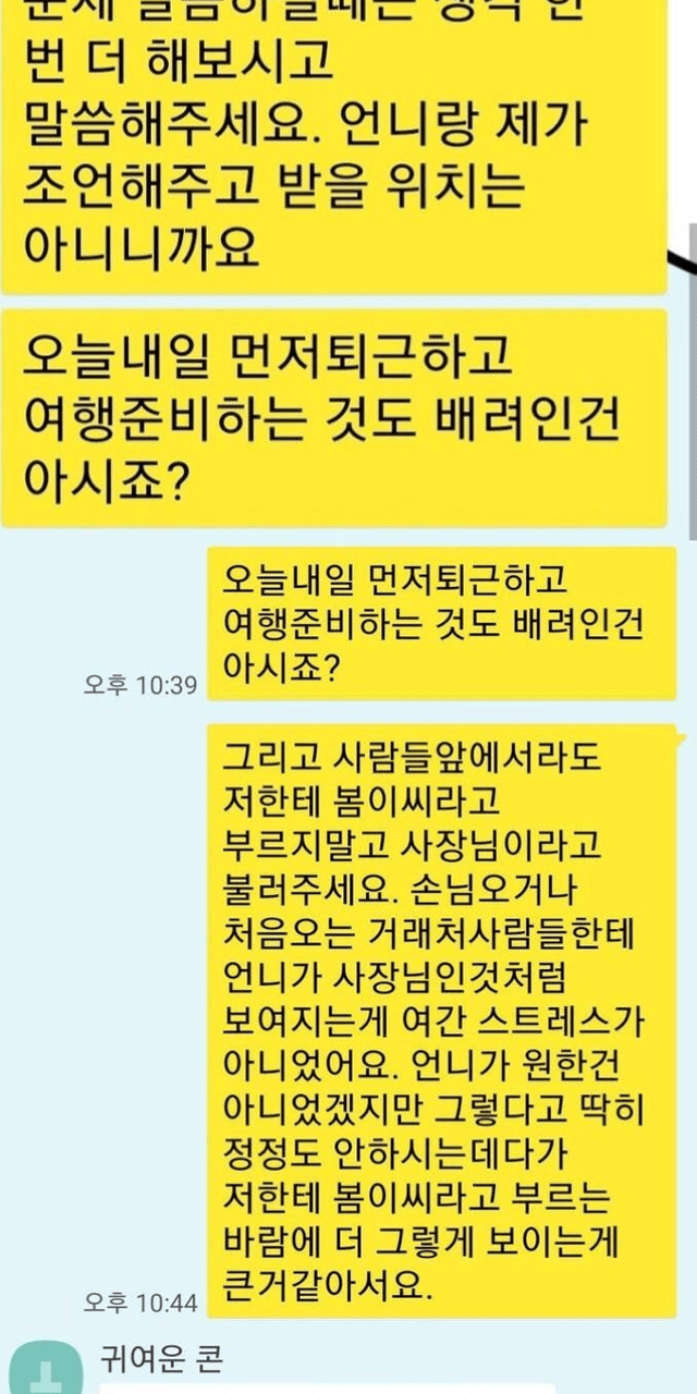 20대 여사장을 대하는 40대 아줌마 직원 수준