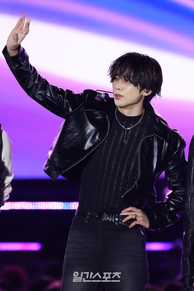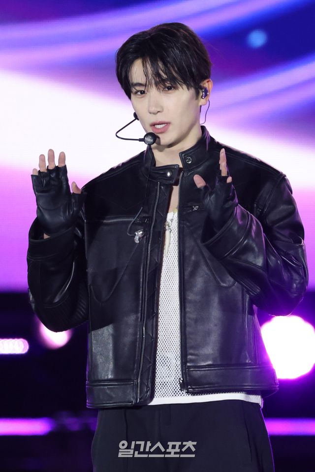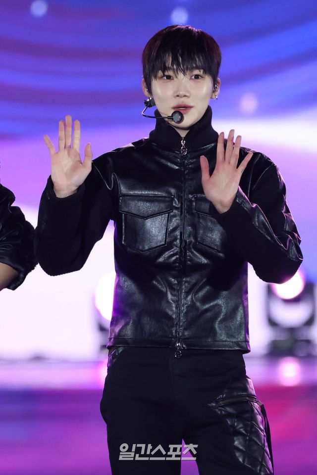 그룹 더보이즈가 지난 3일 인천 서구 아시아드주경기장에서 열린 'Trend wave Festival 2025 (트렌드웨이브 2025)'에서 관객과 소통하고 있다.