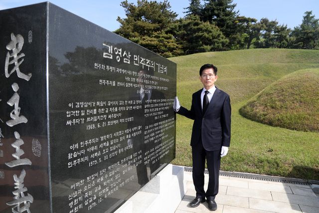 | ▲김문수 대선후보, 김대중,김영삼 전대통령 묘역참배 사진 |