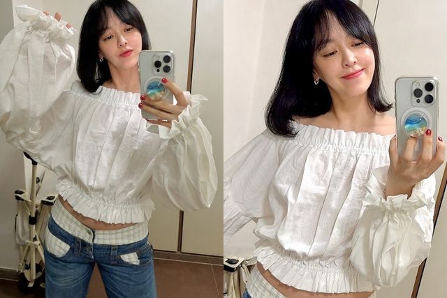 공개된 사진 속 강성연은 화이트 퍼프 블라우스에 데님 팬츠를 입고 거울 셀카를 찍고 있다. 5월을 맞아 한층 사랑스러운 패션을 선보인 강성연은 두 아들 엄마라고는 믿기지 않는 동안 미모를 뽐냈다.