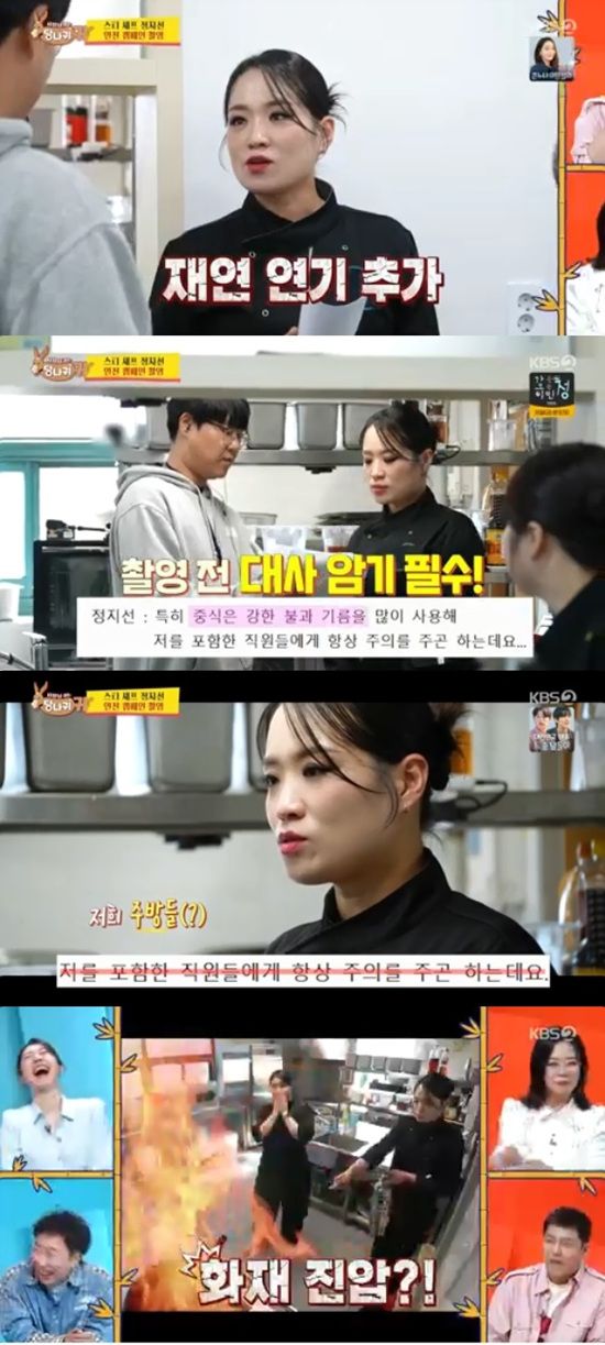 정지선은 생각보다 난도가 높은 대사와 재연 연기까지 해야 한다는 사실을 알고 당황했다.